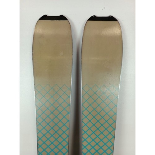Minimalne pojedyncze ślady użytkowania - drobne ryski na szacie graficznej nart i wiązań.