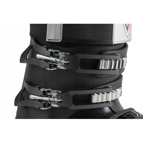 Zapięcie na cztery klamry aluminiowe z mikroregulacją , zaprojektowane z myślą o precyzyjnym dopasowaniu, doskonale przenosi energię z buta na nartę, co przekłada się na większą kontrolę i stabilność.